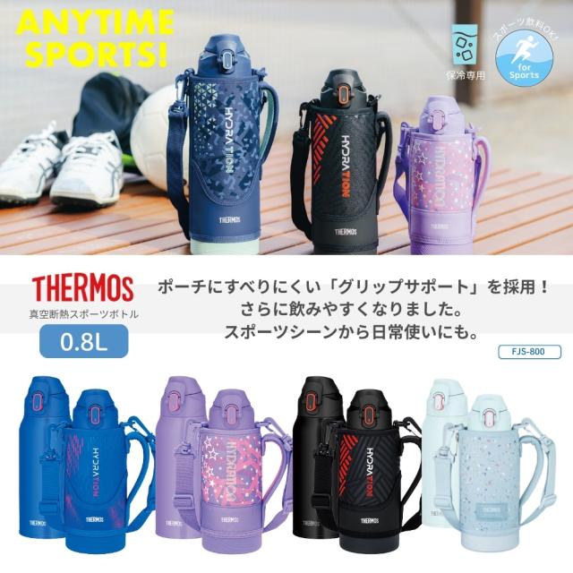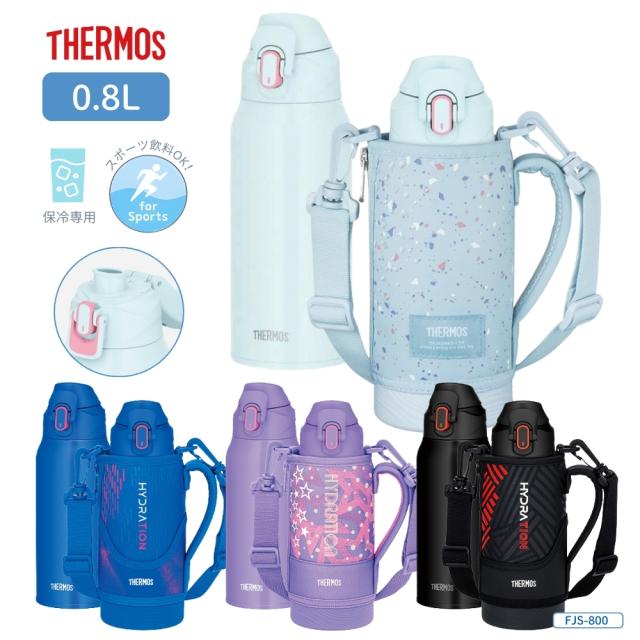サーモス 真空断熱スポーツボトル FJS-800F 水筒 800ml マグ ステンレス 保冷専用 カバー付き スポーツドリンク ワンタッチ ポーチ ショルダー 子供 大人 キッズ 間口広い スクリュー