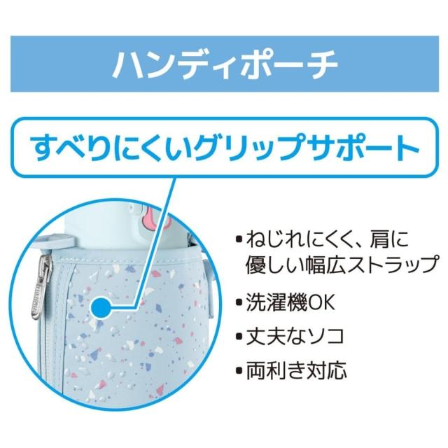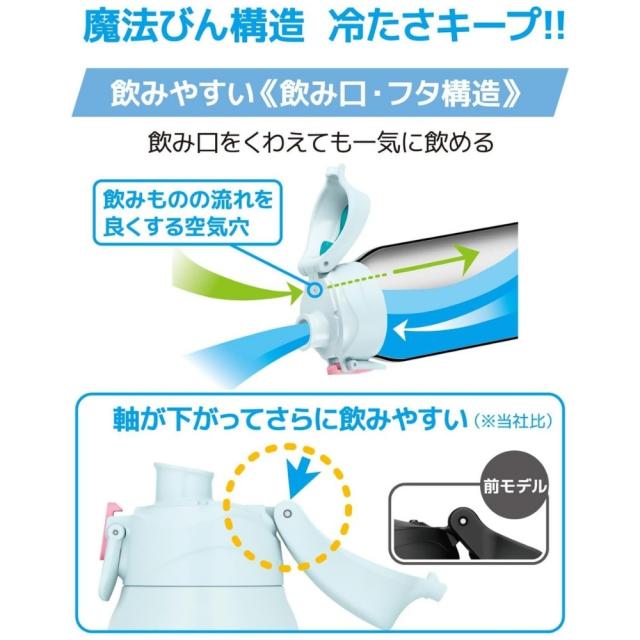 -商品説明- ポーチにすべりにくい「グリップサポート」を採用! さらに飲みやすくなりました。 人気のスポーツボトルがリニューアル。両手で握ったときにすべりにくい加工を施したポーチや、大きく開いて飲みやすいキャップユニットなど使いやすさにこだわりました。 すべりにくいグリップサポート シリコン素材のプリント加工で、両手で持ちやすく、飲みやすい。 飲みやすい飲み口・フタ構造 フタが大きく開き、飲みものの流れを良くする空気穴で、飲み口をくわえても一気に飲める。 軸が下がってさらに飲みやすい(※当社比) ワンタッチ・オープン ワンタッチで簡単オープン。 ツートンカラーのロックリングでロックされているのがわかりやすい。 ハンディポーチ 高いホールド性のハンドル。 丈夫なソコ ポーチソコに摩擦に強い素材を採用。 ねじれにくく、肩に優しい幅広なストラップ 氷が入るワイドな口径 スポーツ飲料OK! -仕様- ・カラー / JAN: ブラックオレンジBKOR/4562344393973 ブルーピンクBLP/4562344393980 パープルピンクPLP/4562344393997 フロスティブルーFRB/4573603021452 ・型番:FJS-800F ・実容量(L):0.8 ・保冷効力(6時間):10℃以下 ・口径(約cm):4.5 ・本体寸法/幅×奥行×高さ(約cm):8.0×8.5×23.5 ・本体重量(約kg):0.4 保冷効力とは、室温20℃±2℃において製品に4℃以下の水をキャップユニット下端まで満たし、水温が4℃±1℃のときからキャップユニットを付けて縦置きした状態で6時間放置した場合におけるその水の温度です。 実容量とは、キャップユニット下端までの容量です。ご使用の際は、取扱説明書をご確認いただき適正な量を入れてください。 本体寸法(ポーチを含まず)は0.5cm単位、本体重量(ポーチを含む)は0.1kg単位で表示しています。 -注意事項- ・商品の色はできる限り実物に近づけていますが、ディスプレイ設定や撮影条件により色味が異なる場合があります。ご了承ください。 ・ご注文のタイミングや内容により、購入後のキャンセルや修正が制限される場合があります。 ・同時に複数のご注文があった場合、システム上の遅延により在庫がないにも関わらず購入できてしまう場合があります。そのような場合は速やかにメールでお知らせいたします。 |