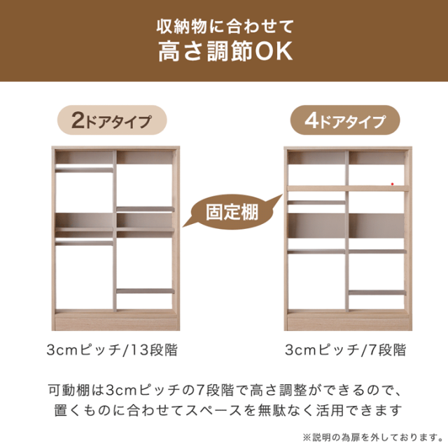 ・棚板は収納物に合わせて高さ調節OK