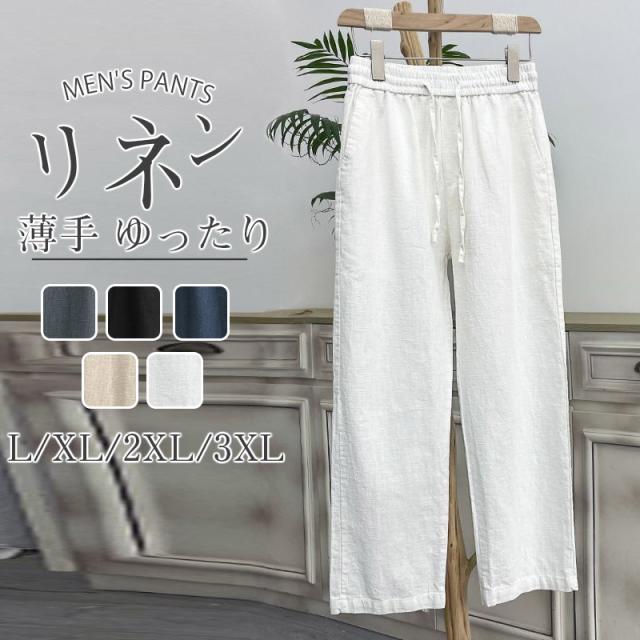 メンズ リネンパンツ ワイドパンツ 綿麻 ストレート ゆったり カジュアル スポーツ ビジネス ロングパンツ ストリート 涼しい イージーパンツ 夏