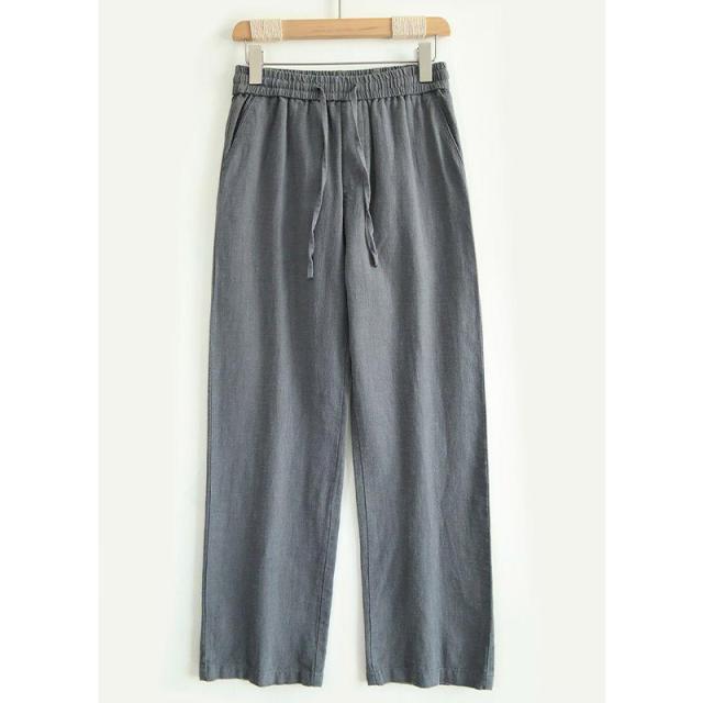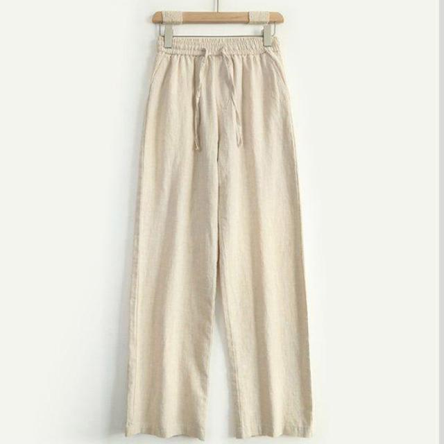リネン混ワイドストレートパンツ
