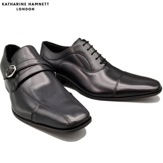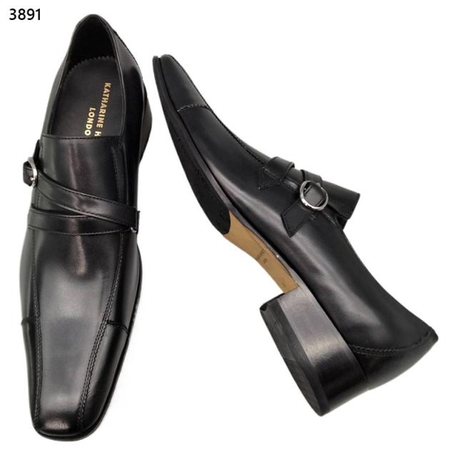 キャサリンハムネット メンズ ビジネス 靴 シューズ 本革 レザー 天然皮革 クロスベルト スリッポン ストレートチップ 内羽根 マッケイ製法 ブラック 黒 送料無料 KATHARINE HAMNETT 3891 3894