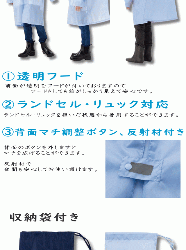 ゆうパケット送料無料 子供用 キッズ 軽量 コンパクト 携帯 撥水加工 収納ケース付き 反射素材 140cm 150cm 160cm ボタン留め フード付き