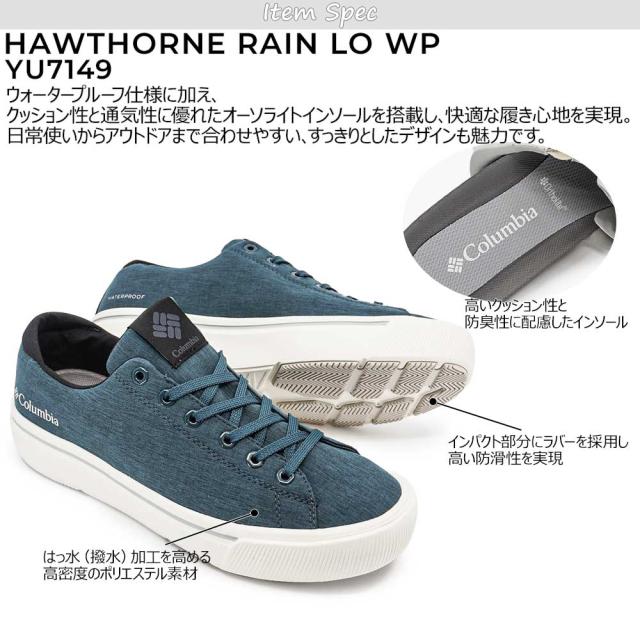 【26春夏新作】 コロンビア スニーカー 防水 ホーソンレイン ロー WP レインシューズ YU7149 ローカット メンズ レディースColumbia