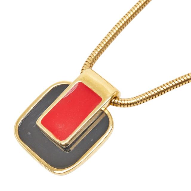 ジバンシー スクエア 蛇腹チェーン ペンダントネックレス ゴールド ブラック レッド メッキ エナメル レディース Givenchy 【中古】