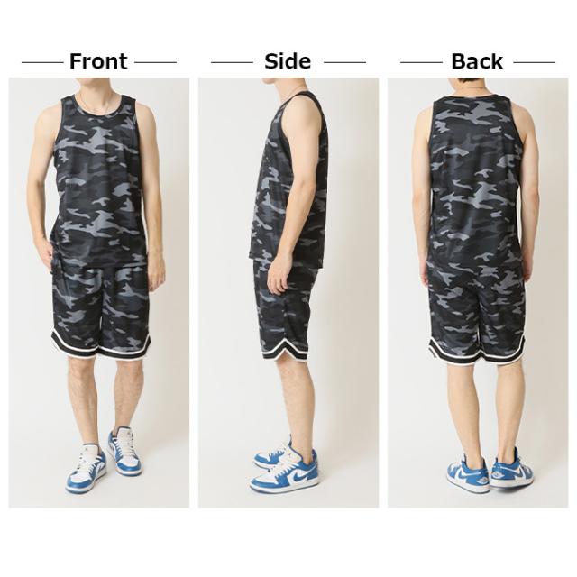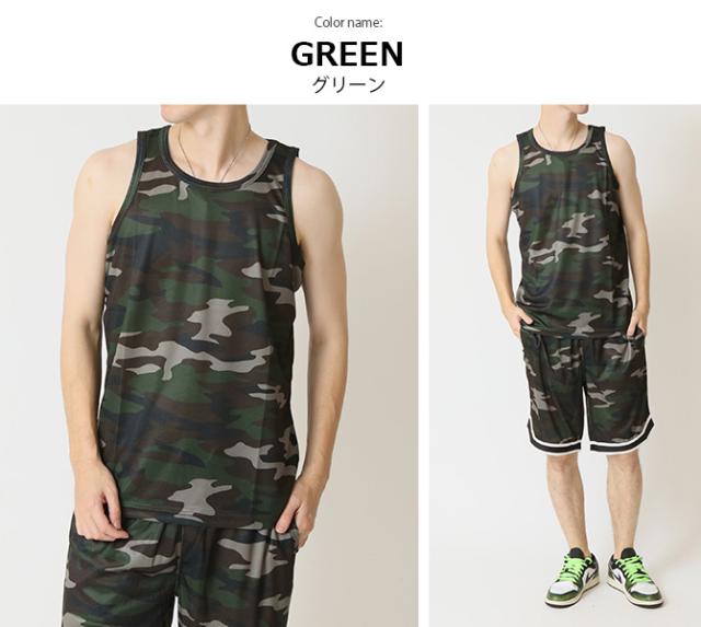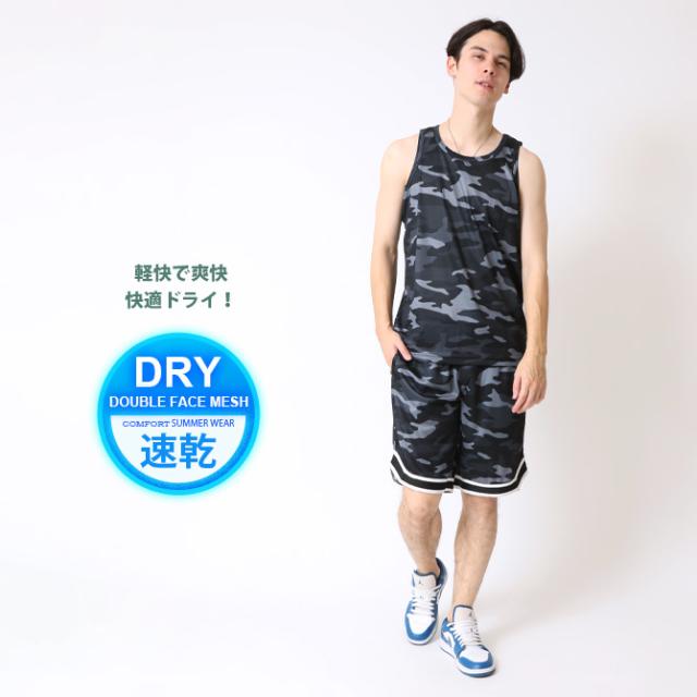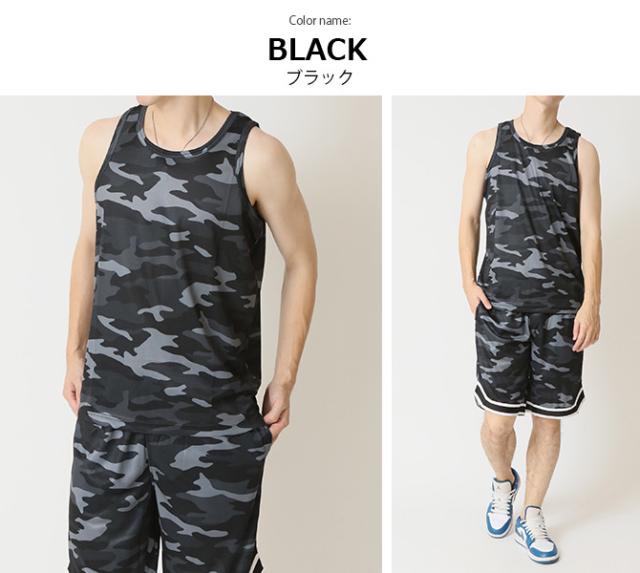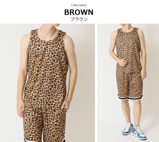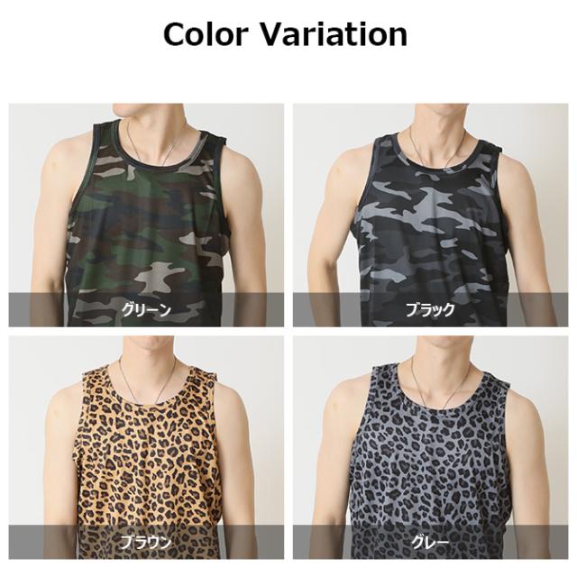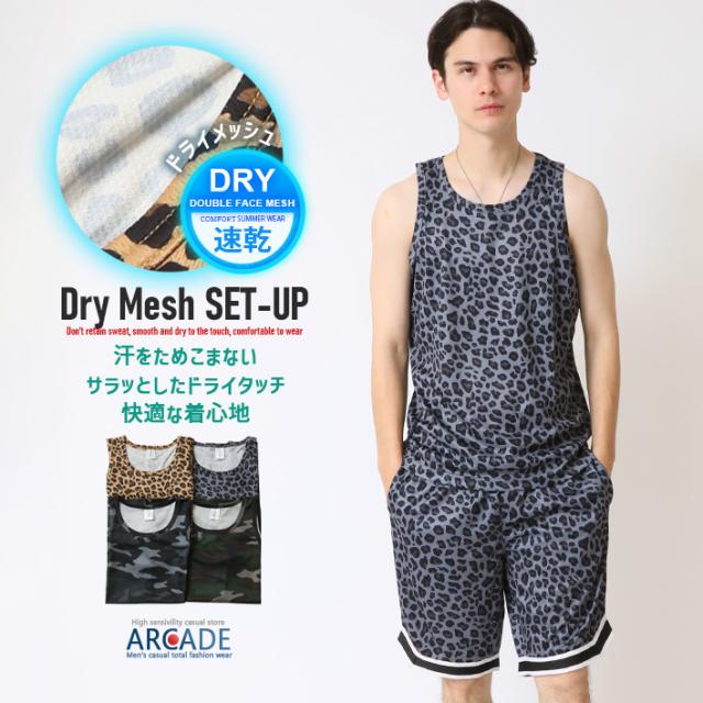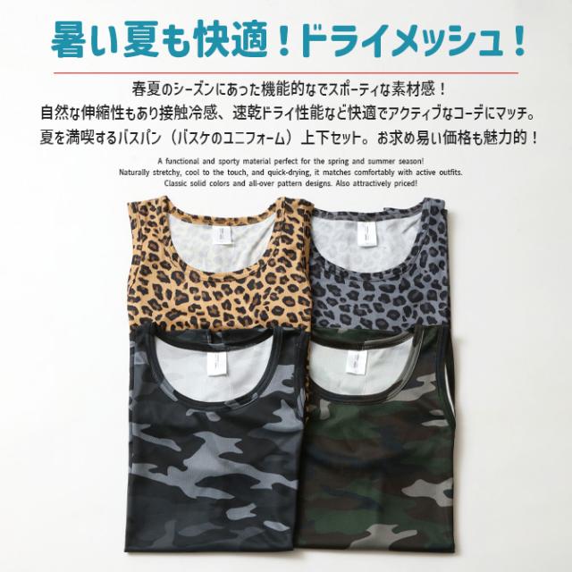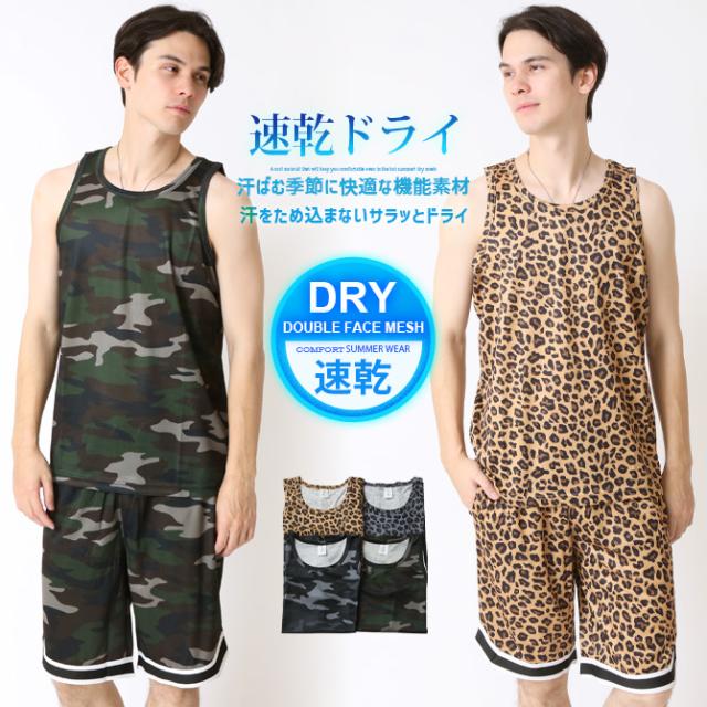 速乾 上下セット メンズ セットアップ 汗 ベタつき軽減 涼しい 夏 タンクトップ バスパン クイックドライメッシュ 豹柄 ヒョウ柄 レオパード カモフラージュ 迷彩柄