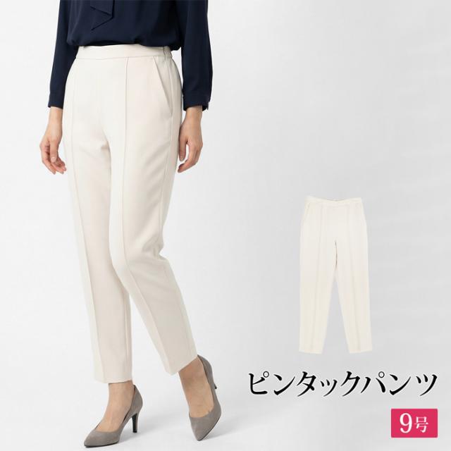 送料無料 訳あり 某ブランド タグカット パンツ ピンタック センタープレス 美脚 洗える●レディース ボトムス ズボン ロング フォーマル 卒入学式 卒入園式 40代 オフィス 通勤 ウエストゴム ライトベージュ 9号[57265
