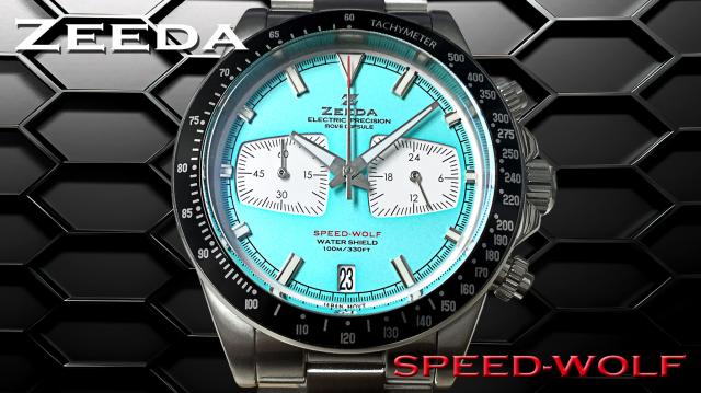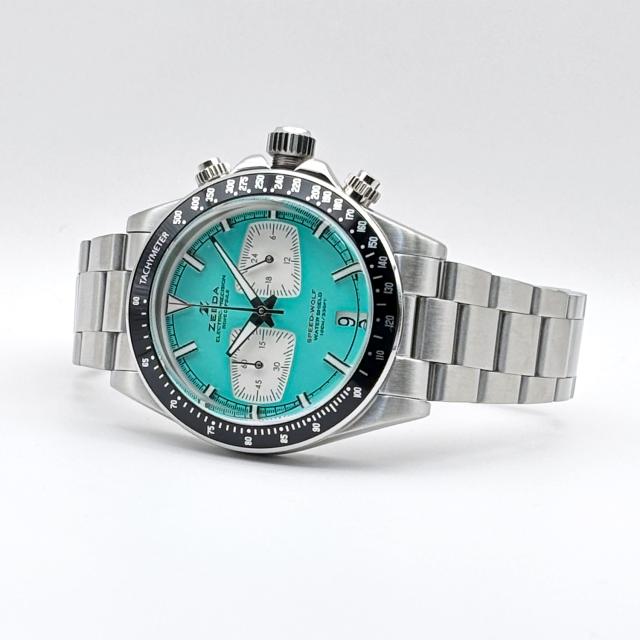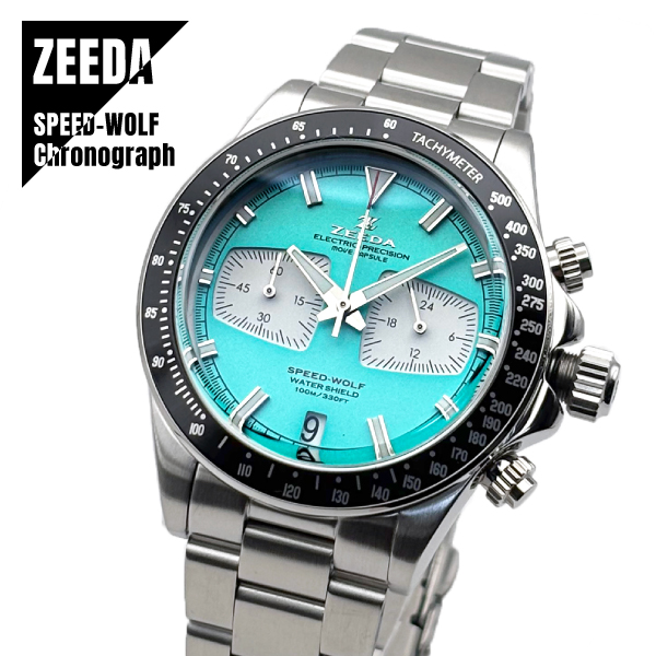 ZEEDA SPEED-WOLF ジーダ スピードウルフ クロノグラフ TMI(SEIKO)ムーブ搭載 SPW-MBL ターコイズブルー×シルバー メンズ レディース