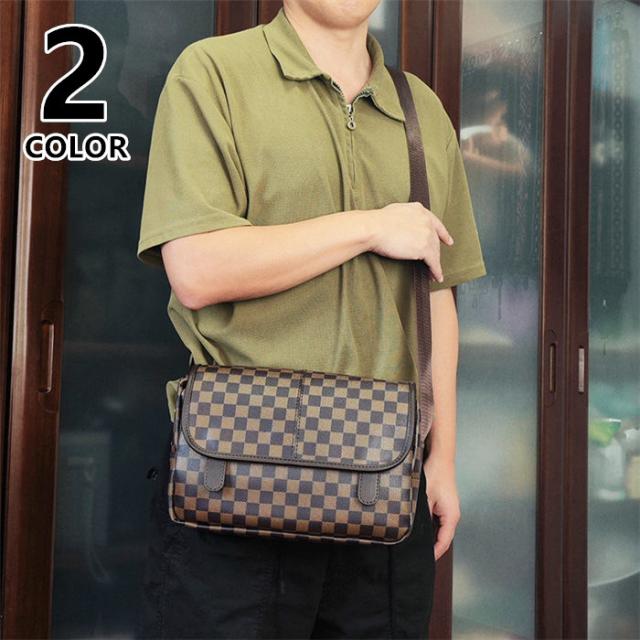 ショルダーバッグ メンズ 斜め掛け 肩掛け 革鞄 ビジネスバッグ 紳士鞄 大容量 撥水加工 カバン ワンショルダー チェック柄 メッセージバッグ 自転車バッグ 通勤 通学 アウター カジュアル 横型 プレゼント シンプル 革 レトロ かばん スマホ入れ タブレット入れ