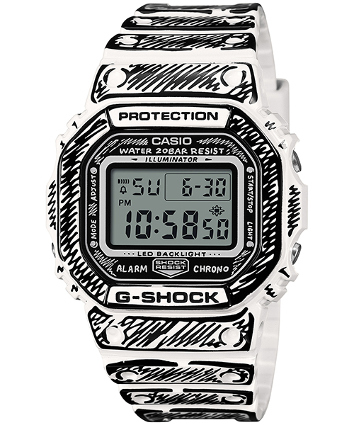 ブラックベースのDW-6900JVはホワイトのグラフィックを施し、マット仕上げでシャープな表情に。ホワイトベースのDW-5600JVはブラックのグラフィックと光沢仕上げにより、強いコントラストと存在感を演出します。両モデルとも、Joshuaの手描き風フェイスデザインが特徴で、バックライト点灯時には彼のトレードマーク「Cone」が浮かび上がります。特製パッケージ付きのスペシャルモデルです。