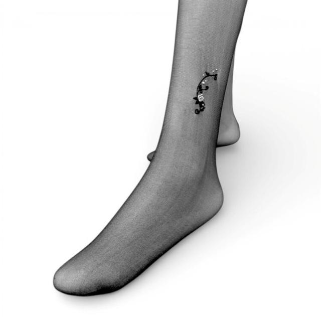 柄は3柄、A、B柄は左足首サイドに柄が入り、C柄はバックシーム(後ろの縫い目)です