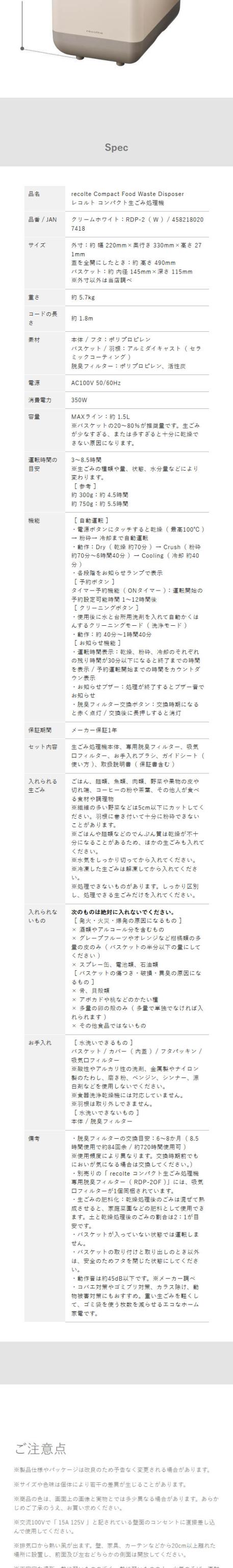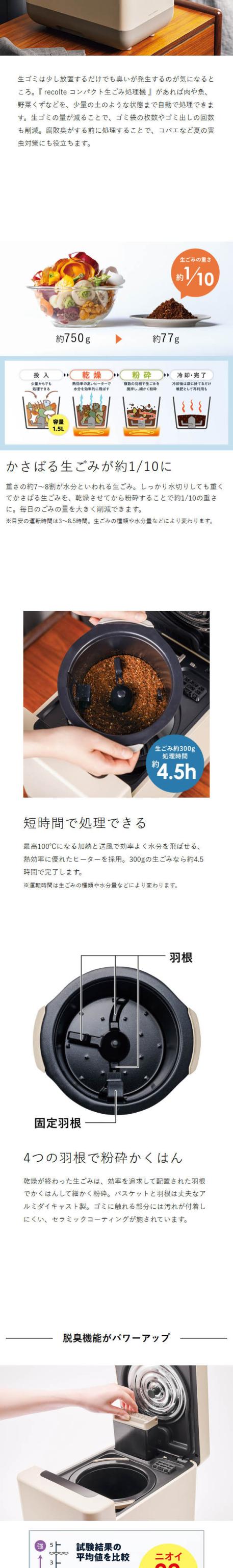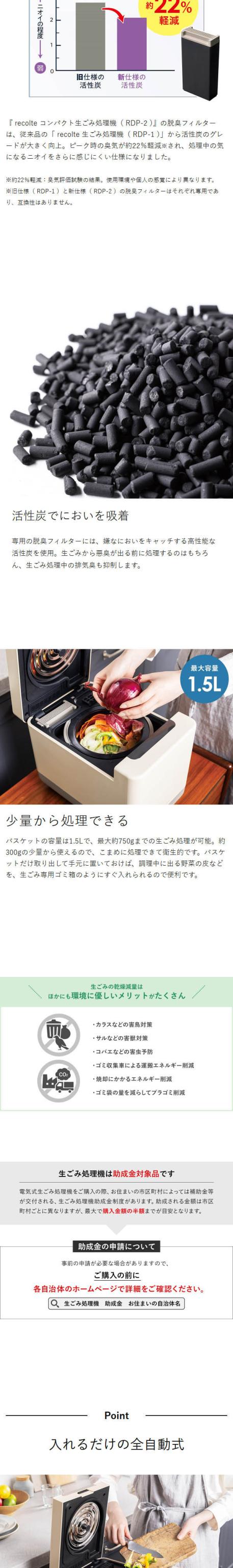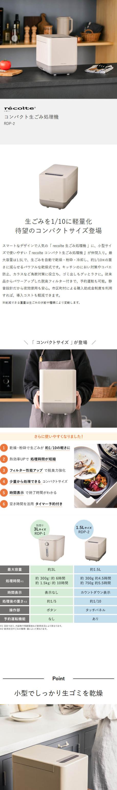 [ recolte コンパクト生ごみ処理機 ]生ゴミ処理機 助成金対象 レコルト 乾燥式 生ごみ乾燥機 脱臭フィルター 生ゴミ乾燥機 自動 1.5L 乾燥機 におい 消臭 ディスポーザー 予約機能 キッチン 台所 乾燥 粉砕 ゴミ箱 家庭用 おしゃれ recolte RDP-2