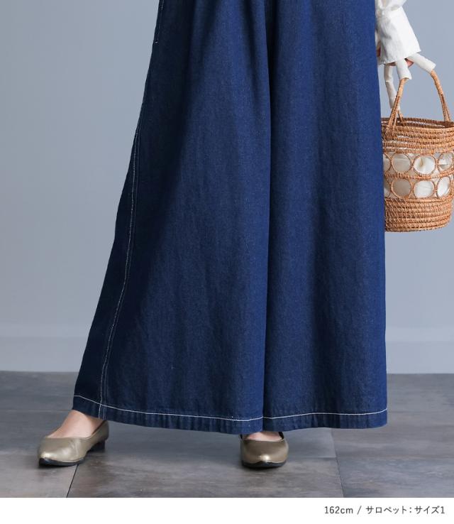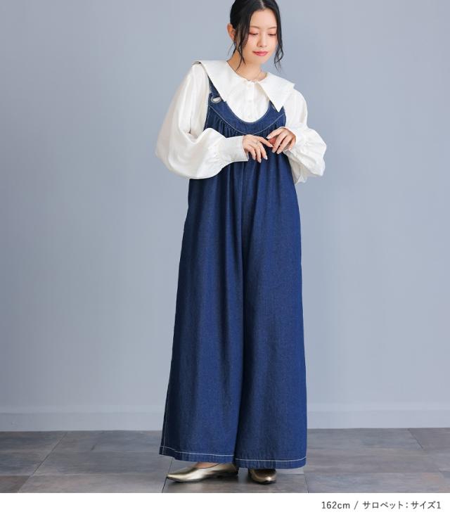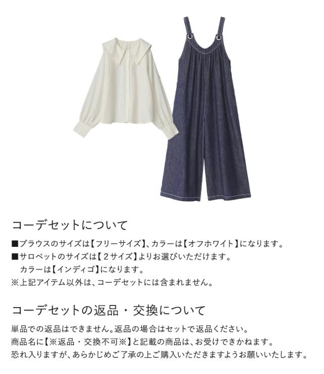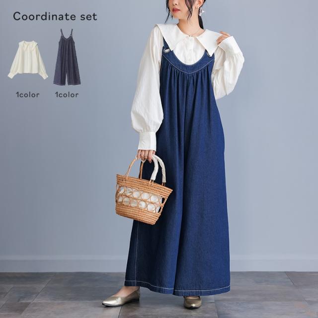『セーラーカラーブラウス×ワイドデニムサロペットコーデ2点SET』【メール便不可】【40】[2点コーデセット 2026 レディース ブラウス 布帛トップス 長袖ブラウス サロペット ワイドパンツ デニム オールインワン]
