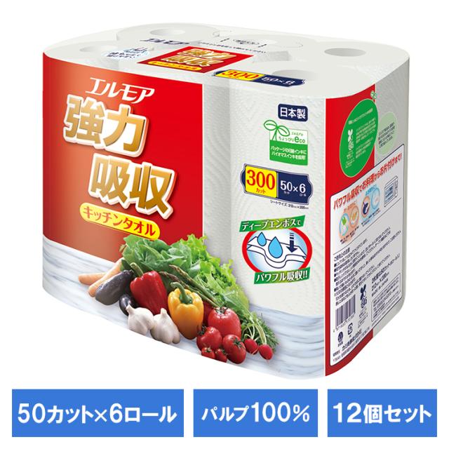 カミ商事 吸収力 キッチンタオル キッチン 4ロール パルプ100% ロールタイプ 【12個セット】エルモア強力吸収キッチンタオル 6R 50カット 143331 エルモア カミ商事 エルモア 吸収力 キッチンタオル キッチン kitchen 4ロール パルプ100% パルプ ロールタイプ 送料無料
