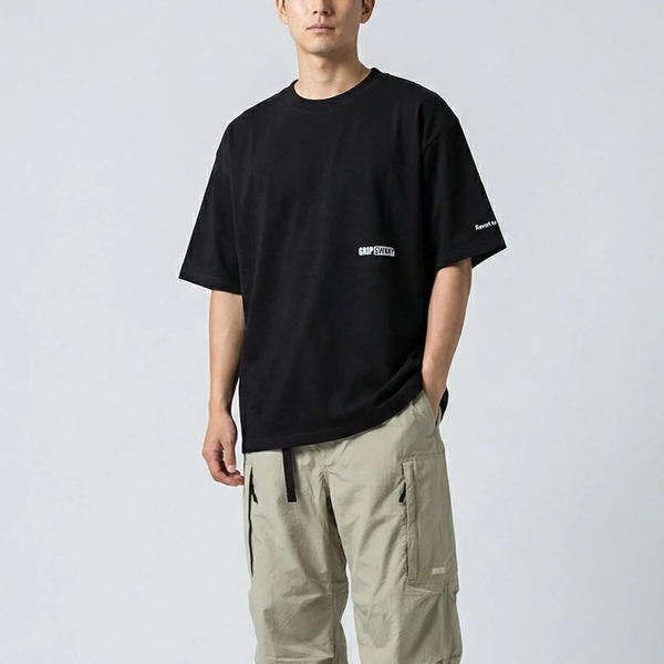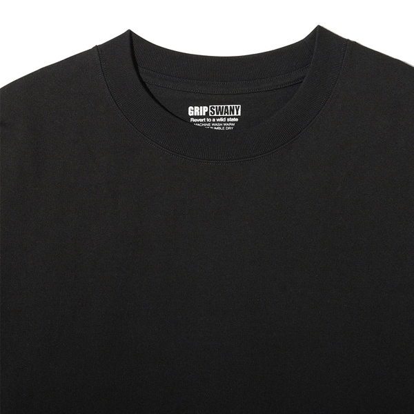 程よく厚みのある9ozオープンエンド天竺を使用した、ワイドシルエットTシャツ。 ゆったりとしたワイドな身幅で、1枚で着ても自然と様になるバランスの良いシルエットが魅力です。 NEW ERAのキャップと同じ「GRIP SWANY BOX LOGO」を左胸に、 そして「Revert to a wild state」のロゴ刺繍を左袖にあしらい、さりげないアクセントをプラス。 シンプルながらも、さりげない遊び心をきかせた一枚に仕上がっています。 < POINT > ・コットン100%のしっかり生地 ・ワイドシルエット ・ワンポイントの刺繍ロゴ | ||||||