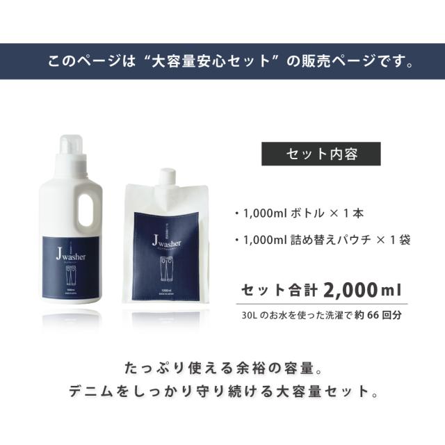 デニム用洗剤 J-Washer 1000ml 大容量安心セット (ボトル+詰め替え) | デニム専用洗剤 おしゃれ着洗い デニム ジーンズ 洗剤 色物洗い 漬け置き 色落ち防止 無着色 無香料 無添加 蛍光増白剤フリー 液体洗剤 衣類洗剤 衣類用洗剤 洗濯用洗剤 中性洗剤 ジェイウォッシャー