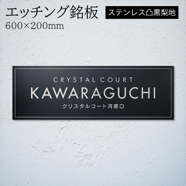 丸三タカギ イエロゴ 看板 表札 サイン エッチング銘板 ステンレスヘアライン凸 黒梨地 MEP7 幅600mm×高さ200mm