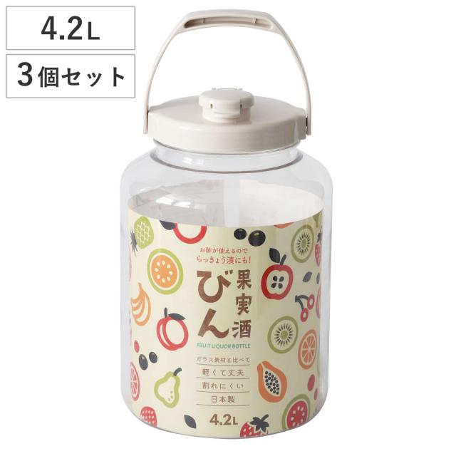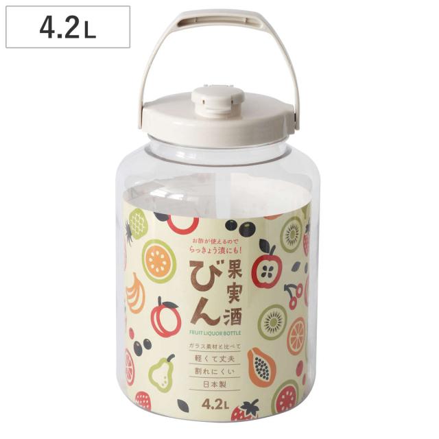 梅酒容器 保存容器 果実酒びん R型 4.2L ( 梅酒びん プラスチック 梅酒瓶 果実酒瓶 軽量 丈夫 日本製 丸型 密閉保存容器 梅酒ビン 果実酒ビン 梅酒作り 果実酒作り 発酵 ガス抜き弁 取っ手 4200ml )