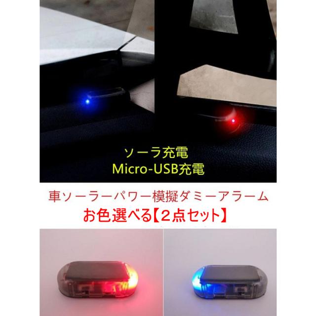 お買い得! お色選べる2点セット ダミー ライト 車 ソーラーパワー 模擬 警告 盗難防止 LED 点滅 セキュリティ ライト 赤青2色展開