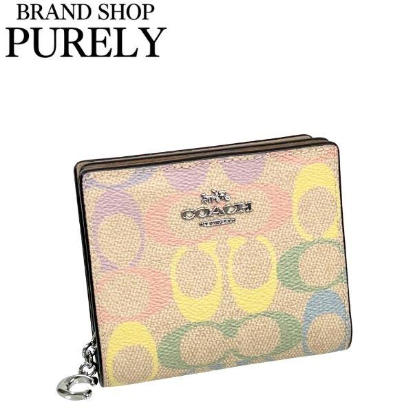 国内発送 コーチ 財布 レディース COACH 折り財布 レインボー シグネチャー スナップ ウォレット CDD11 SVSAS サンドマルチ