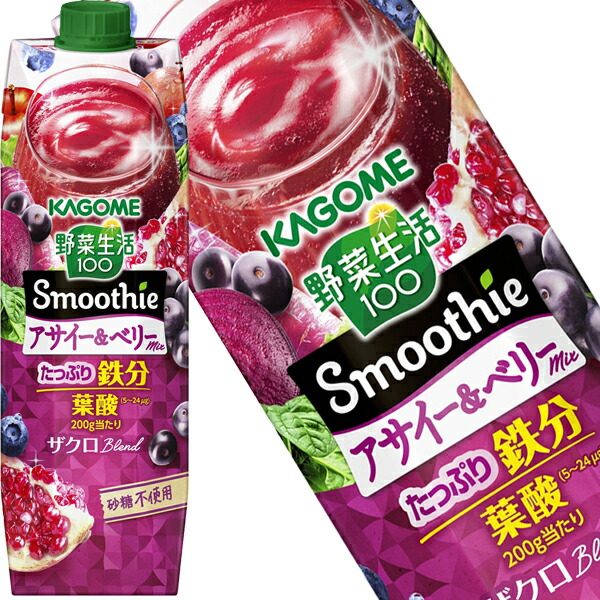 [送料無料] カゴメ 野菜生活100 Smoothie スムージー アサイー&ベリーミックス 1000g紙パック×18本[6本×3箱]【4月14日出荷開始】 野菜ジュース 野菜果実ミックスジュース 砂糖不使用 鉄分 葉酸