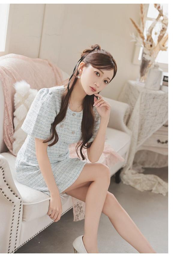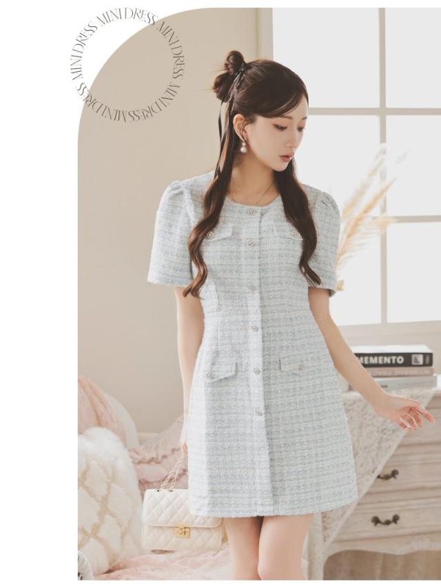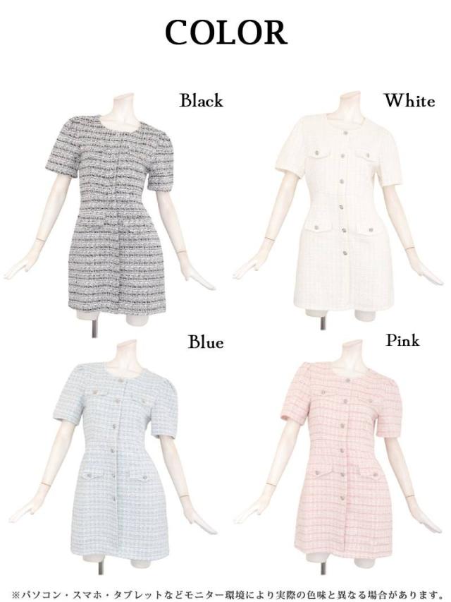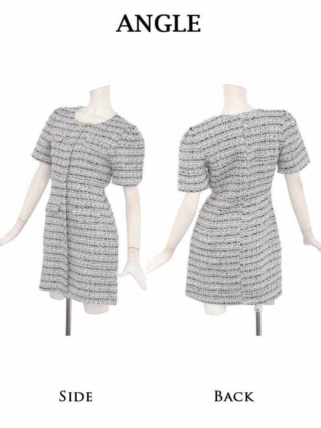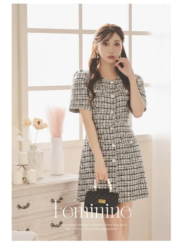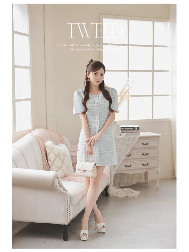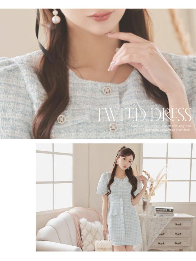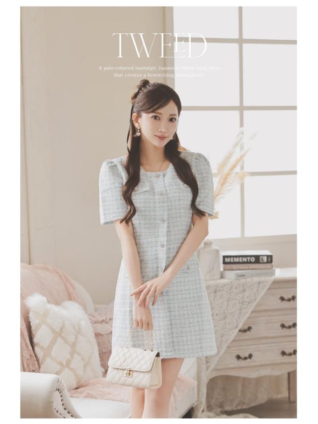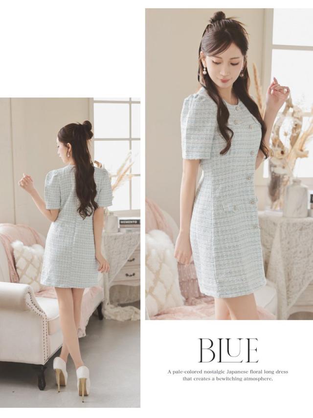 キャバワンピース Ryuyu 肉厚ツイード ミックスツイード パステルカラー 袖付き フェイクボタンではだけない キャバ ワン