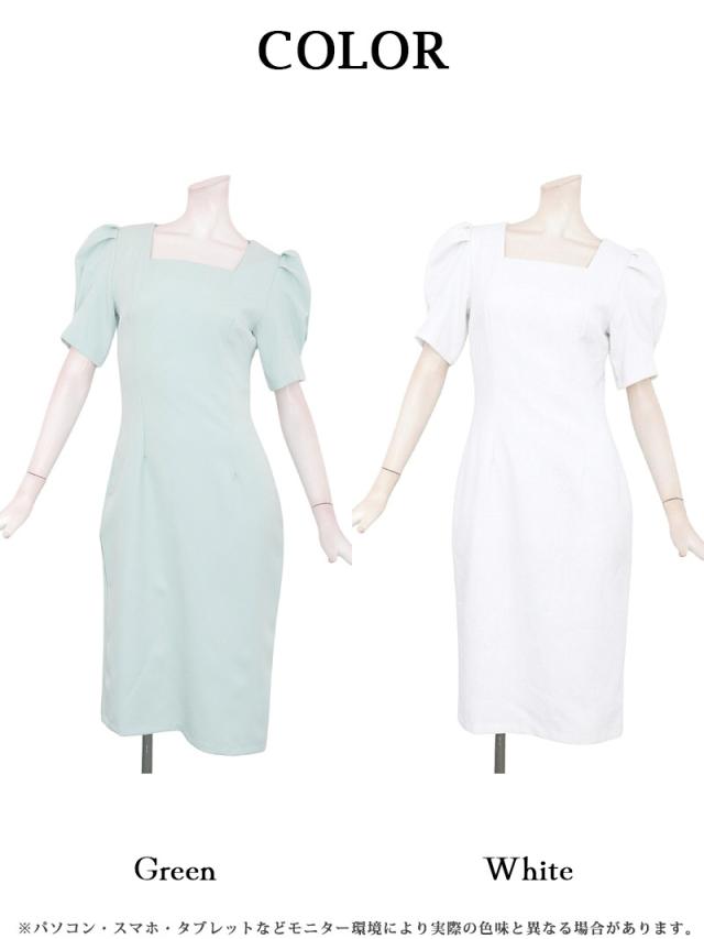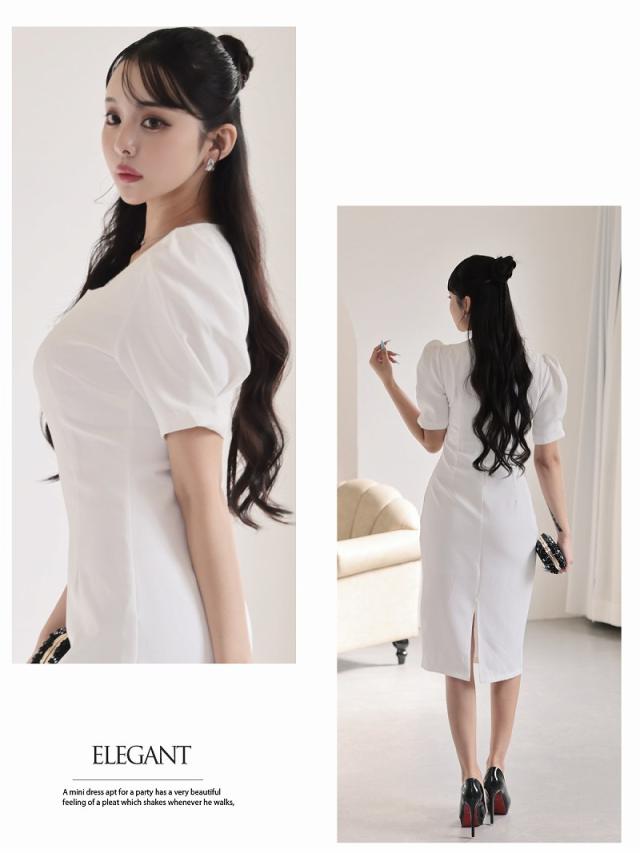 キャバワンピース DaysPiece 韓国風 ミディ丈 パフ袖 美デコルテ 二の腕細見せ キャバ ワンピース ワンピ キャバワ