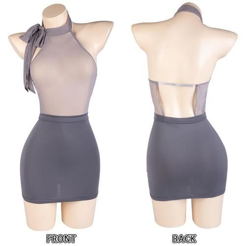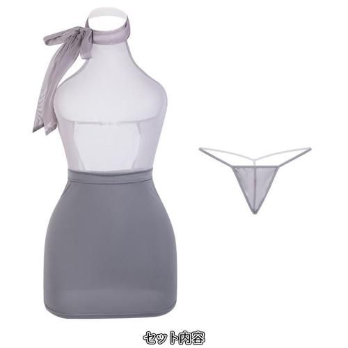 コスプレ 衣装 コスチューム 仮装 セクシー キュート コス オフィスレディ タイト ヒップライン メッシュ リボン 光沢 大胆 伸縮性 ボディコン ミニ丈 透け感 フィット感 切り替え シアー グレー フリーサイズ