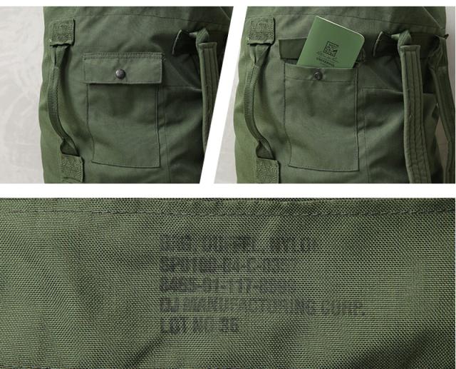 | 商品説明 | リジェクト 訳あり品 実物 USED 米軍 ダブルストラップ コーデュラナイロン ダッフルバック PAINTED(マーキングあり)のご紹介です。 制式名称:BAG,DUFFEL,NYLON 兵士が移動する際、個人の持ち物を詰め込んで運搬する為の大容量なダッフルバッグです。 バックパックのように背負えるよう、長さ調節可能なショルダーストラップがついているほか、横向きに持てるよう側面にはキャリングハンドルも備えられています。 キャリングハンドル横には小さなフラップポケットがあり、すぐに取り出すことが多いスマホや手帳などの小物を収納するのに便利です。 口は留め金を3ヶ所のハトメに全て通し、最後にフックを留めることでしっかり閉じるようになっており、留め金に南京錠を通すことで施錠することも可能です。 また、頑丈なナイロン生地の裏側には防水加工が施されているので、濡れた衣類などをいれて持ち運ぶこともできます。 一人旅やタウンユースにはもちろん、アウトドアやバイク乗りの方にも大変おすすめなアイテムです。 ※撮影に使用した小物は付属しません こちらはUSED PAINTEDの中から破れや穴あき、パーツの破損や紛失など全体的に不具合のある商品を選別しております。リペアを施していただいてからのご使用、もしくはリメイク資材としてもおすすめです。ファーストクオリティの品質を強くお求めの方は念の為ご購入をお控えくださいますようお願い致します。 |