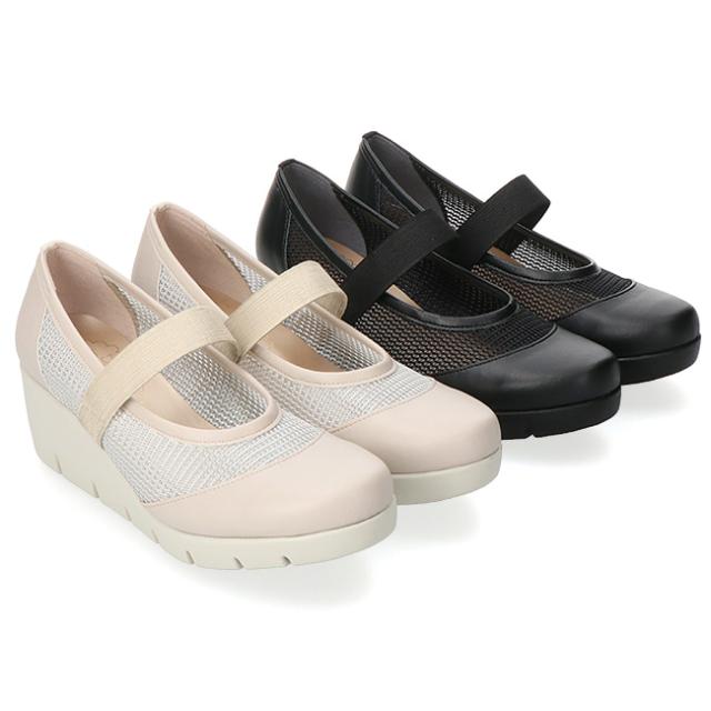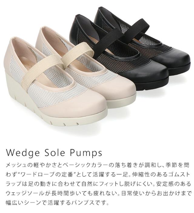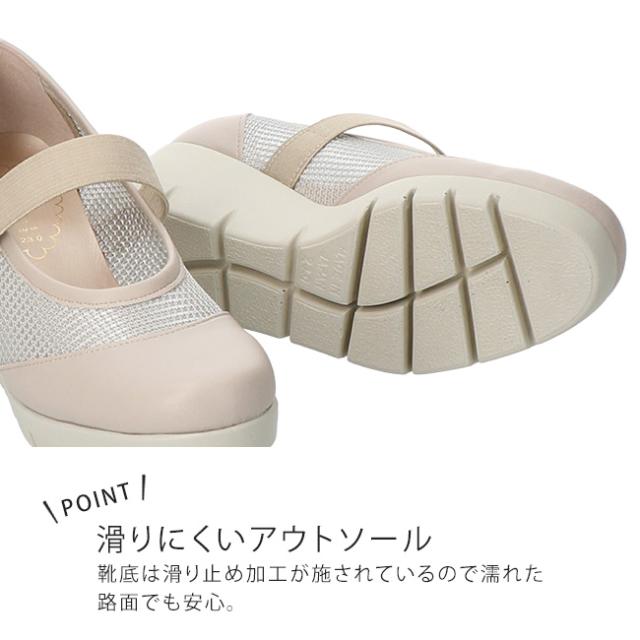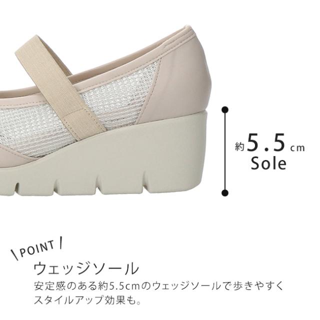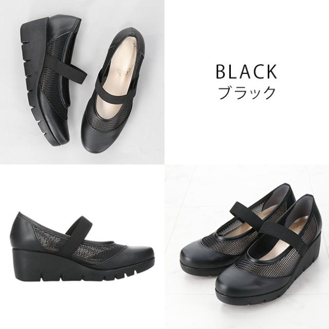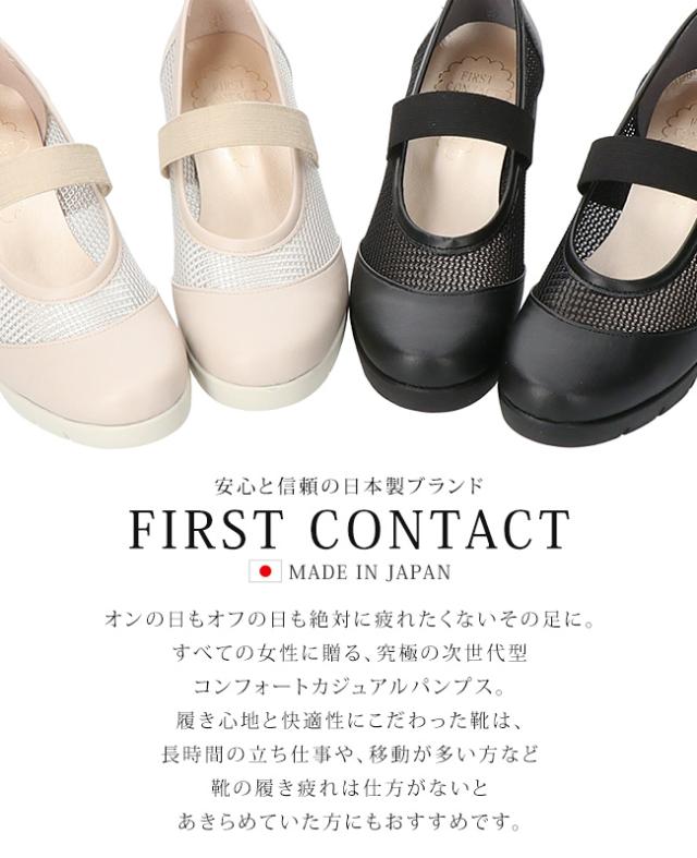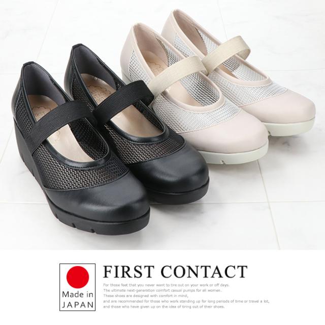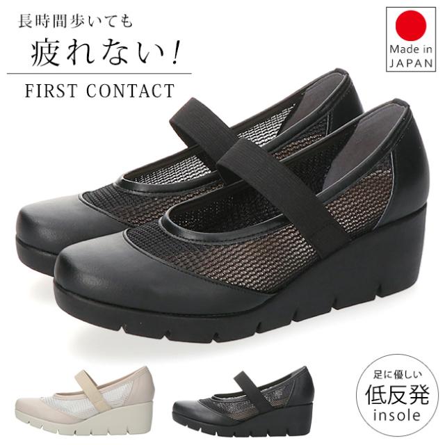 ファーストコンタクト パンプス 厚底 履きやすい 歩きやすい 痛くない ストラップ 疲れない 脱げない 蒸れない ウェッジソール ラウンドトゥ 走れる 2E相当 軽量 おしゃれ かわいい メッシュ 39631 レディース 日本製 通勤 シューズ 靴