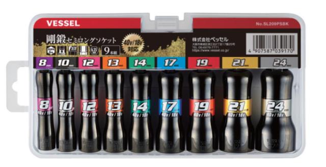 ベッセル 限定 黒仕様 剛鍛 セミロングソケット 9本組 SL209PSBK ブラックチタン 40V 18V対応 6.35mm タイヤ交換 ホイールナット 自動車整備 8-24mm VESSEL