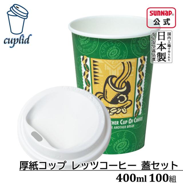 cuplid 厚紙カップ レッツコーヒー 400ml 蓋白セット 100組【紙コップ 蓋付き 蓋セット テイクアウト Lサイズ】