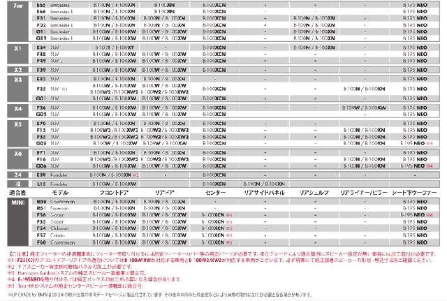 | 【正規品】 殆どのBMW車に適合したアンダーシートウーファートレードインシステム配線は純正コネクターに接続するだけで簡単に行えます。 ユニットは20cm高音質カーボンフリースサンドイッチコーン振動板を採用、強力ネオジウムマグネットの磁気回路、高剛生アルミダイキャストフレームを採用した本格仕様です。 自然で広がりのある解像度の高いサウンドを奏でます。 適合車種の詳細は『BMW車種適合表』を参照願います。 注意:本品は1台の仕様です。左右のウーファー交換には2台必要となります。 純正ウーファーがエンクロージャーに接着されている車種には対応出来ません。 注)適合車種であっても仕様変更などで取付時に加工などが発生する場合があります。 取付の前に確認を行ってください。 |