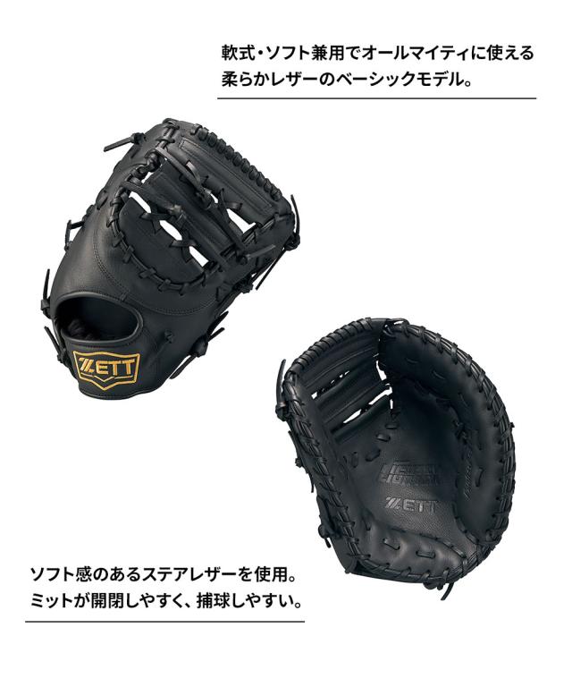 ゼット 野球 軟式 ソフトボール グラブ 兼用 LIGHTEX ライテックス 捕手用 一塁手用 ベースボール キャーストミット キャッチャーミット ファーストミット ミット グローブ カラー 色 ブラック 黒 初心者 練習用 一般 大人 スポーツ ZETT BSFB56923L