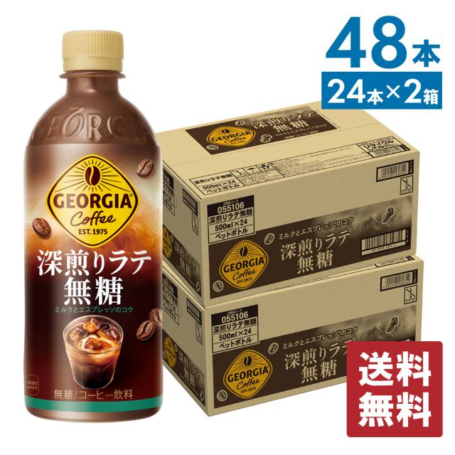 ジョージア 深煎りラテ無糖 500mlPET×24本×2箱 計48本 【送料無料】