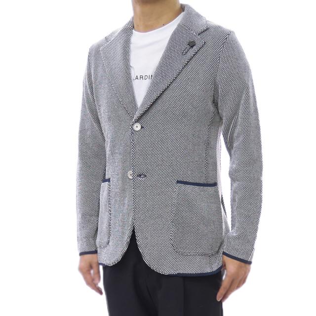 LARDINI ラルディーニ メンズシングル2Bニットジャケット CNCLJM56 CN64011 ネイビー×ホワイト 2026春夏新作