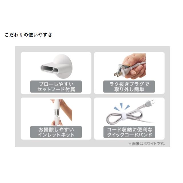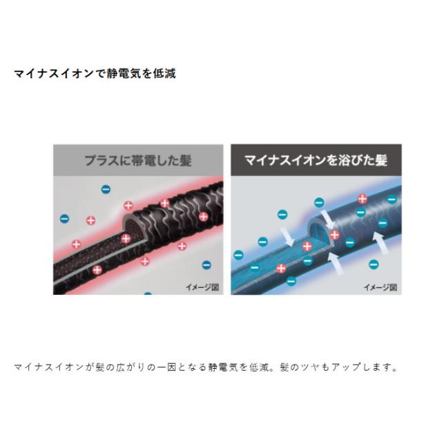 ●マイナスイオンが髪の広がりの一因となる静電気を低減。髪のツヤもアップします。