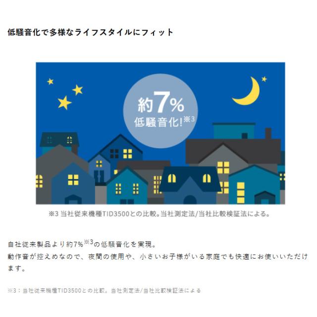 ●低騒音化で多様なライフスタイルにフィット。自社従来製品より約7%低騒音化。動作音が控えめなので家族が寝ている夜間や小さいお子様がいる家庭でも使いやすいです。