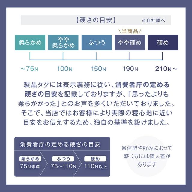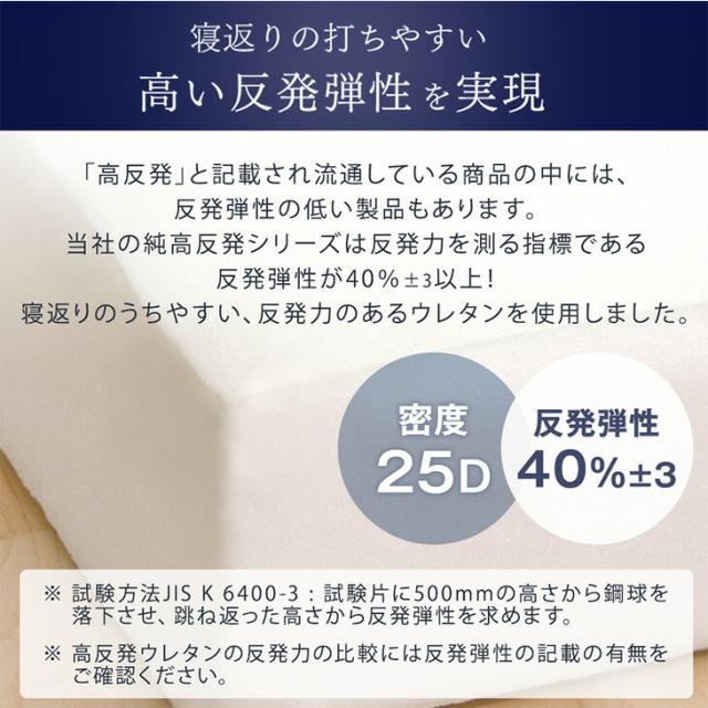 中材:高反発ウレタンフォーム(密度25D<25kg/m3>、190N)