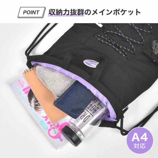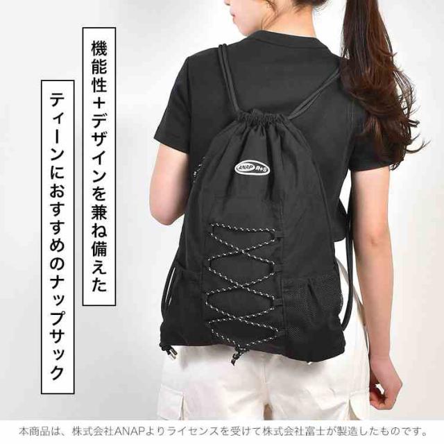 ナップサック ANAP GiRL R+S リラスポ アナップガール 小学生 中学生 女子 A4 軽量 ポケット付き ナップザック ジムバッグ おしゃれ かわいい ジュニア キッズ 女の子 体操服入れ スポーツ 部活 学生 高校生 シンプル ブランド カジュアル ブラック アイボリー ラベンダー