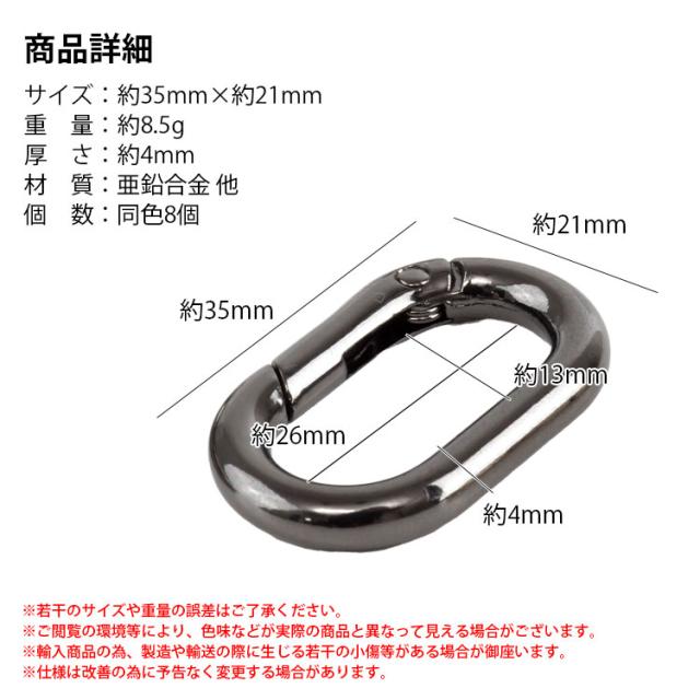 カラビナ 楕円型 楕円形 キーリング オーバル パーツ 小型 軽量 キーホルダー バッグ チャーム アウトドア 鍵 アクセサリー 35mm