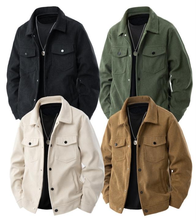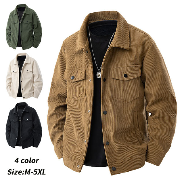 ジャケット メンズ 長袖 シャツ コーデュロイジャケット ボタンダウン カジュアルアウター 無地 ゆったり ショートコート 春 秋 カジュアル おしゃれ ジャンパー 大きいサイズ