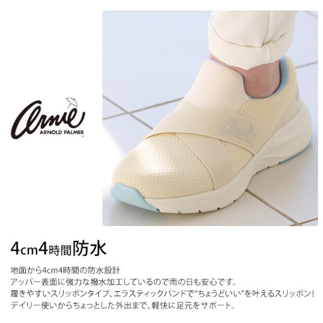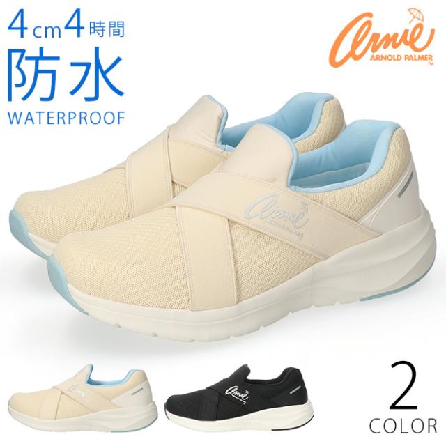 アーノルドパーマー スリッポン スニーカー レディース 防水 撥水 履きやすい 疲れにくい 歩きやすい 滑らない 軽量 おしゃれ かわいい エラスティックバンド AN0988 雨 通勤 通学 シューズ 靴