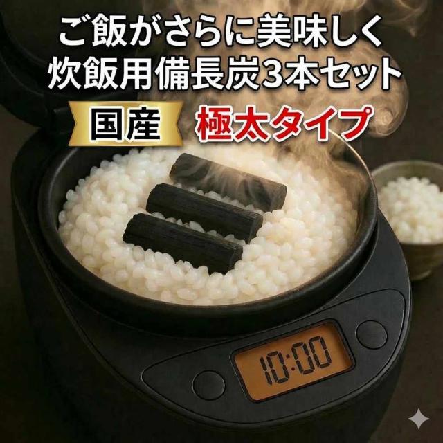 備長炭 国産 炊飯用 極太 備長炭 3本セット 炊飯のプロ推奨 日本製 ご飯 美味しく ふっくら 炊く 備蓄米 お米 ごはん 古古米 古々米 政府備蓄米 炊飯器 釜 備長 炭 すみ 卵かけごはん 飲料用 浄水 ミネラル ウォーター 水 浄水用 脱臭 除湿