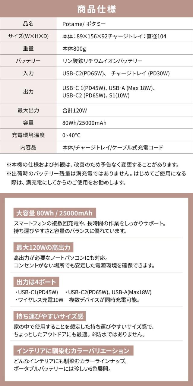 Potame 卓上電源 ポータブル電源 小型 送料無料