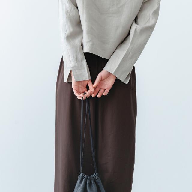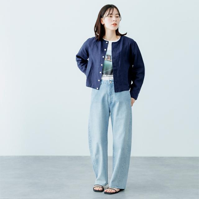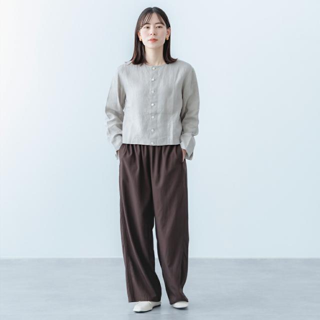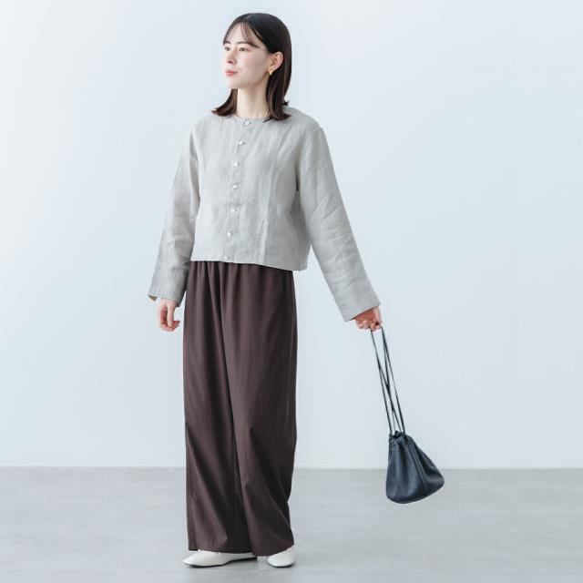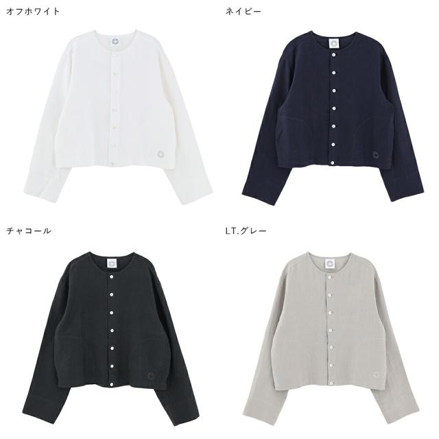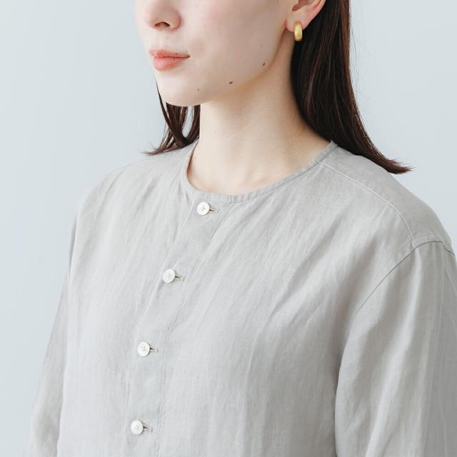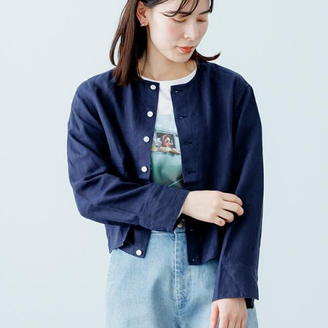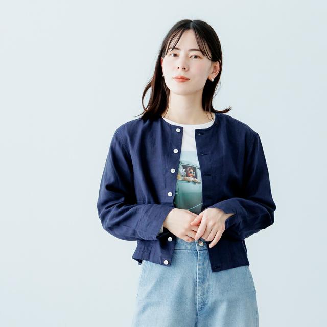 羽織りにもトップスとしても使える、 40番手リネンのさらりとした風合いに、タンブラー加工でほどよい柔らかさを加えた素材を使用。軽さと通気性にすぐれ、春夏に心地よく着られる一枚です。シンプルで飽きのこないデザインは日常に馴染み、羽織りにもトップスにも使える2way仕様で、季節の変わり目にも頼れるアイテムです。 軽やかさを纏う、リネンのやわらかな表情