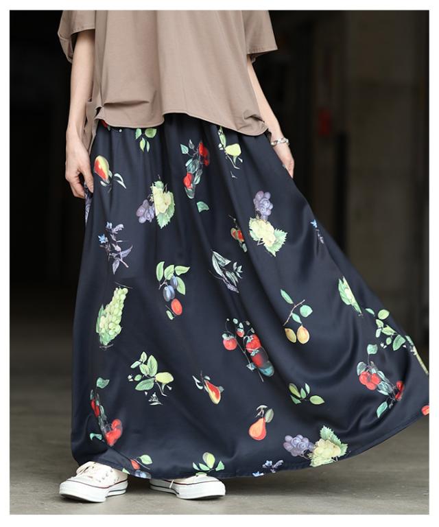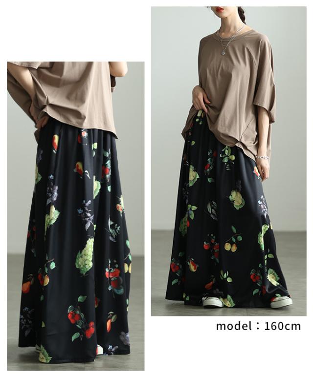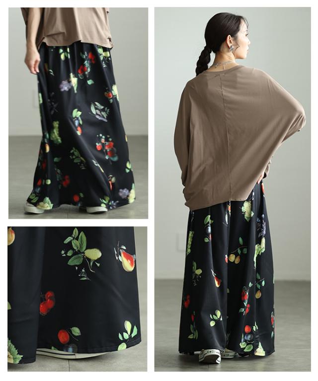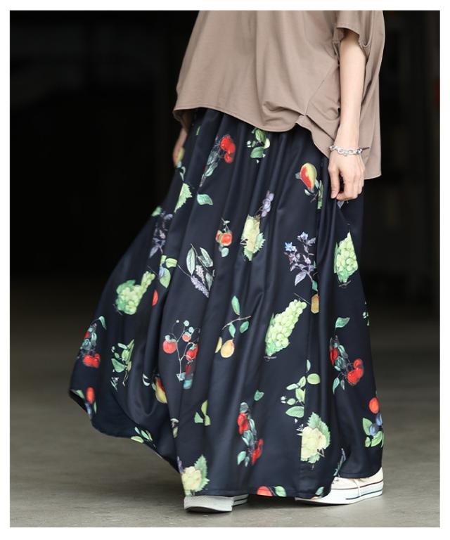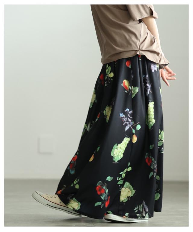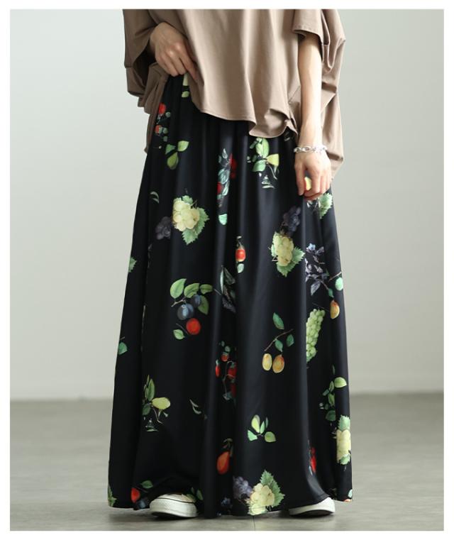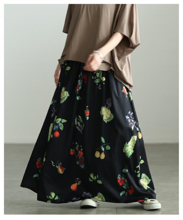 春新作 足下華やぐトロピカルフルーツ柄ギャザーフレアスカート レディース ファッション スカート フルーツ 総柄 ギャザー フレア ウエストゴム ロング 裏地 30代 40代 50代 60代 アラモード alamode otona 大人 cawaii 可愛い 洋服 かわいい服 aldt-844a3583