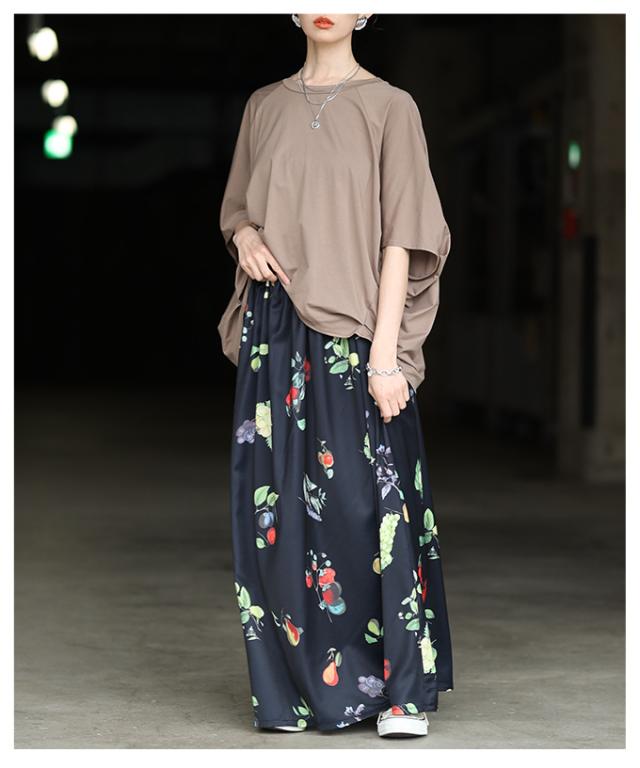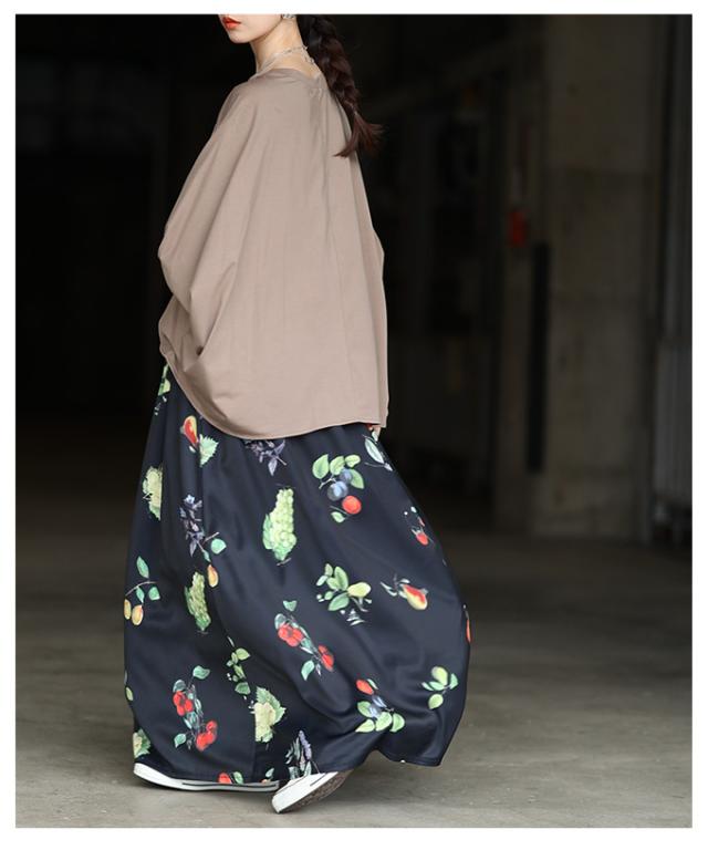 商品名: トロピカルフルーツ柄ギャザーフレアスカート