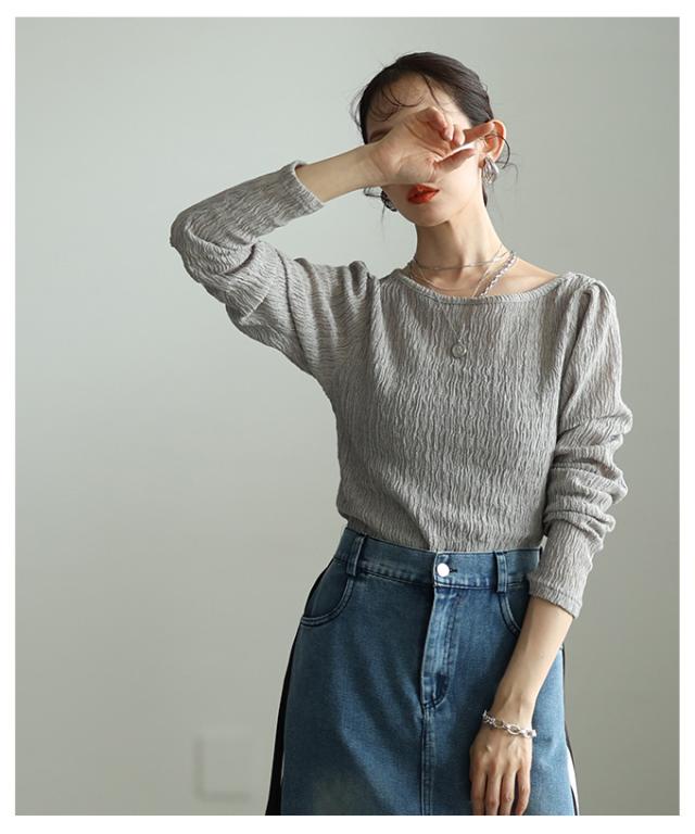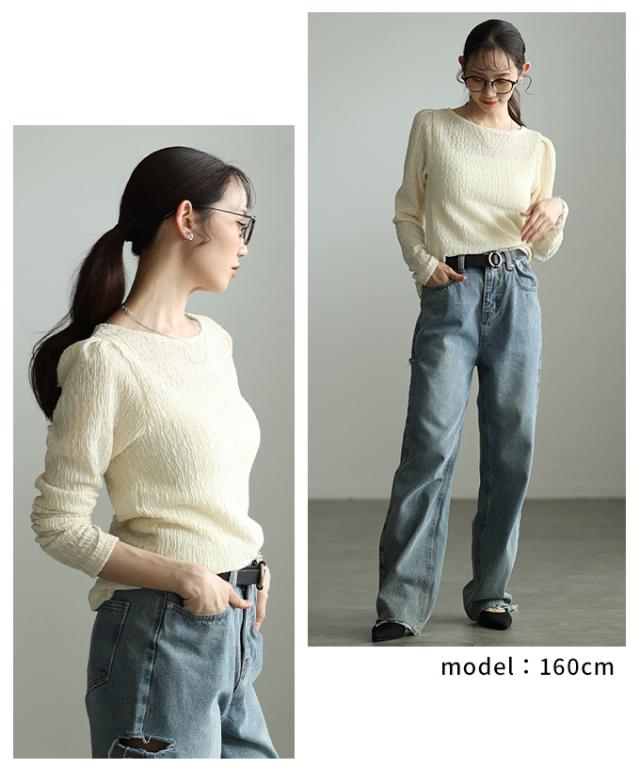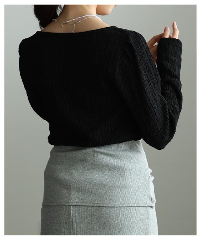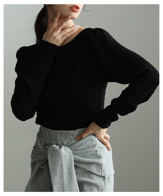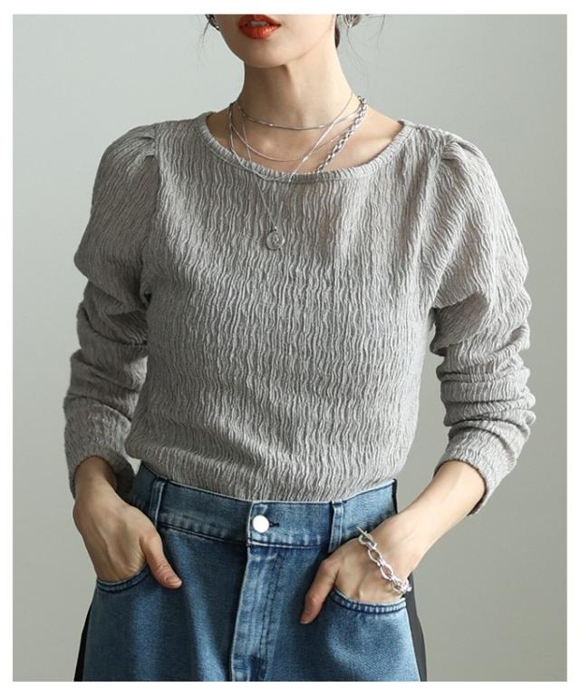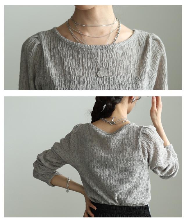 特徴: くしゅくしゅ 立体 シャーリング タック パフスリーブ シアー ラウンドネック