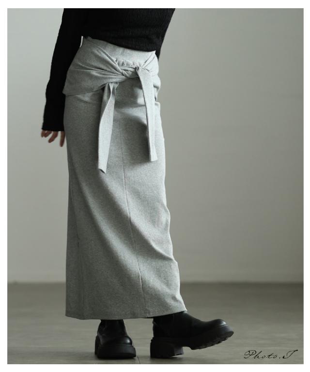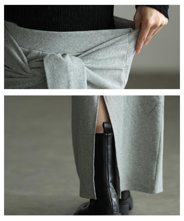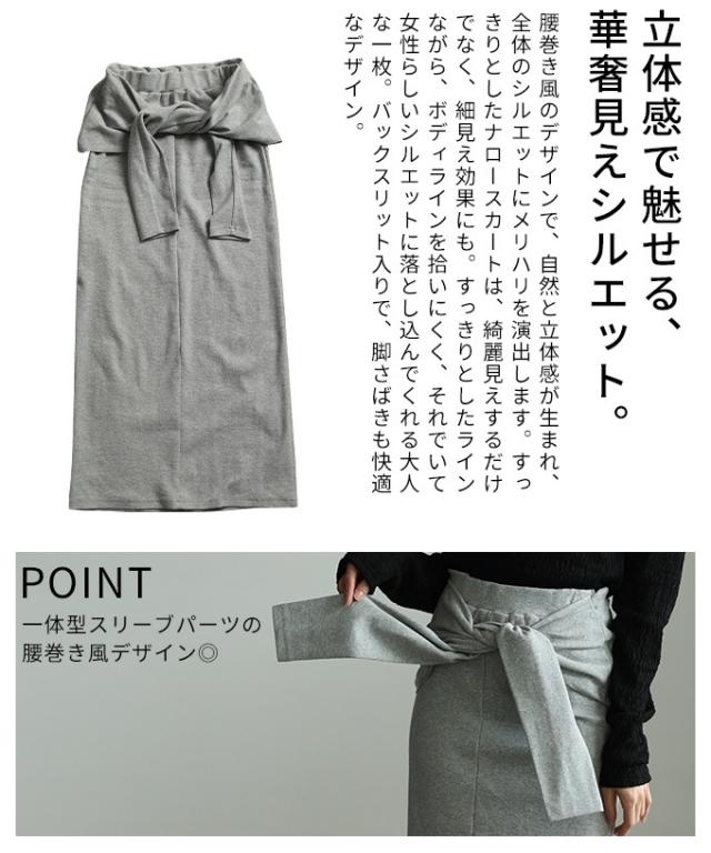 春新作 お洒落好き必見!一体スリーブ腰巻風カットリブナロースカート レディース ファッション スカート ナロー ストレート リブ 腰巻風 ロング スリット 無地 30代 40代 50代 60代 アラモード alamode otona 大人 cawaii 可愛い 洋服 かわいい服 aldt-564f2482